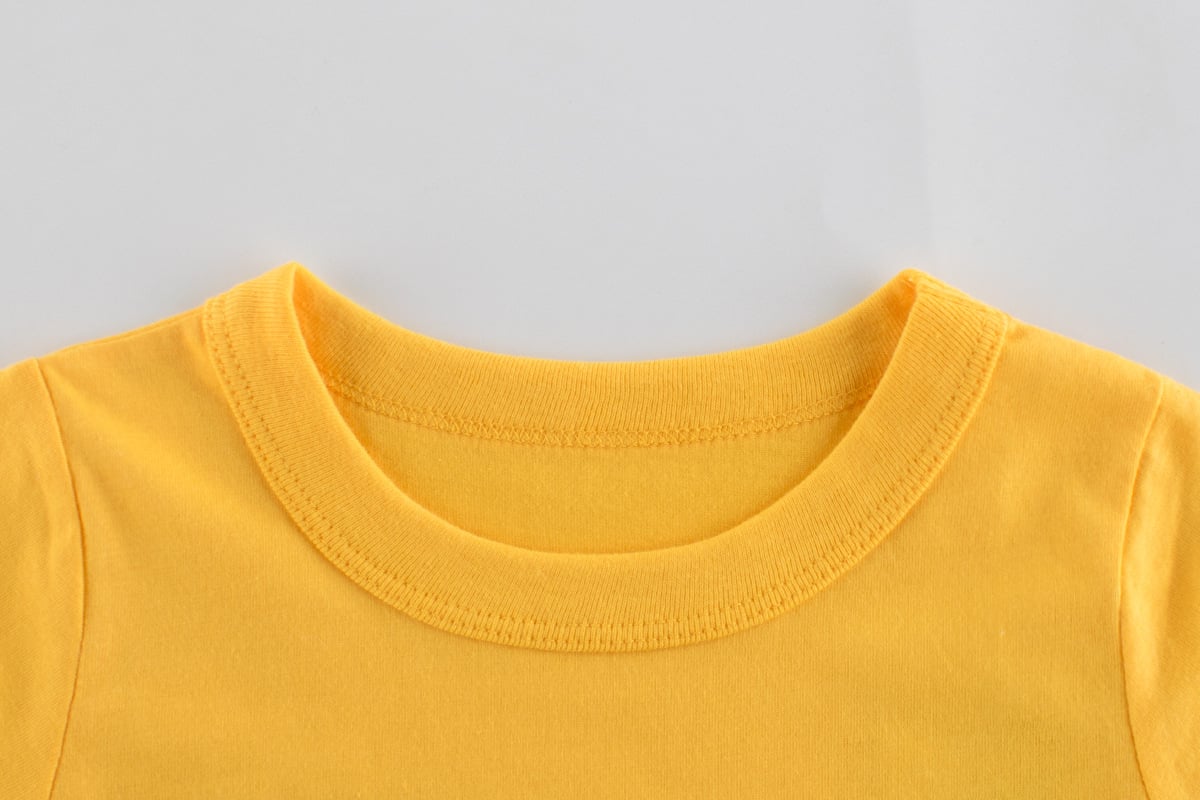Designed with a classic round neck, this shirt is available in a variety of vibrant colors including Blue, Red, White, and Yellow, allowing your child to express their unique style. With sizes ranging from 90cm to 140cm, there's a perfect fit for every boy.